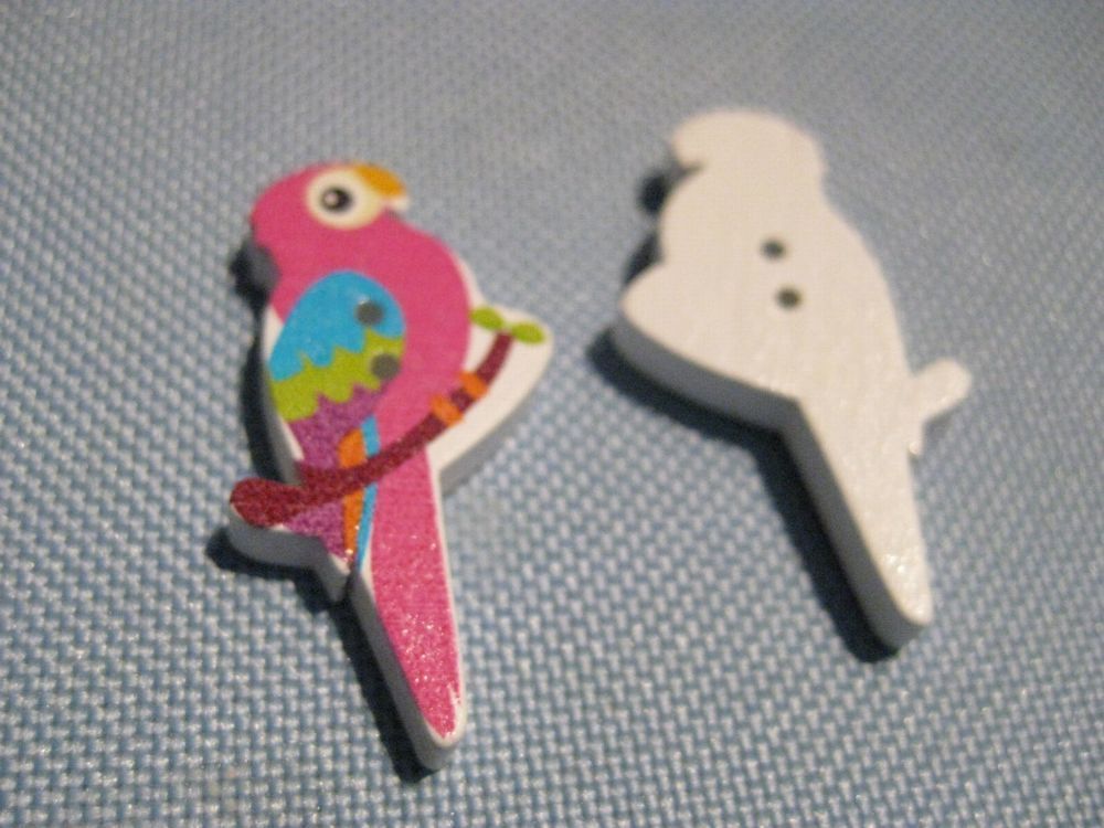 1Kinderknopf Holzknopf Papagei pink 35x19x4mm 2 Loch 2mm Nr 164