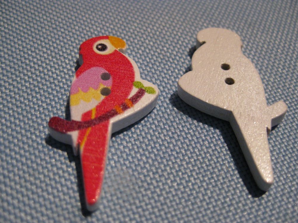 1Kinderknopf Holzknopf Papagei rot 35x19x4mm 2 Loch 2mm Nr 166