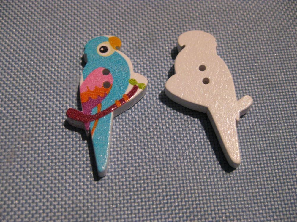 1Kinderknopf Holzknopf Papagei türkis 35x19x4mm 2 Loch 2mm Nr 158