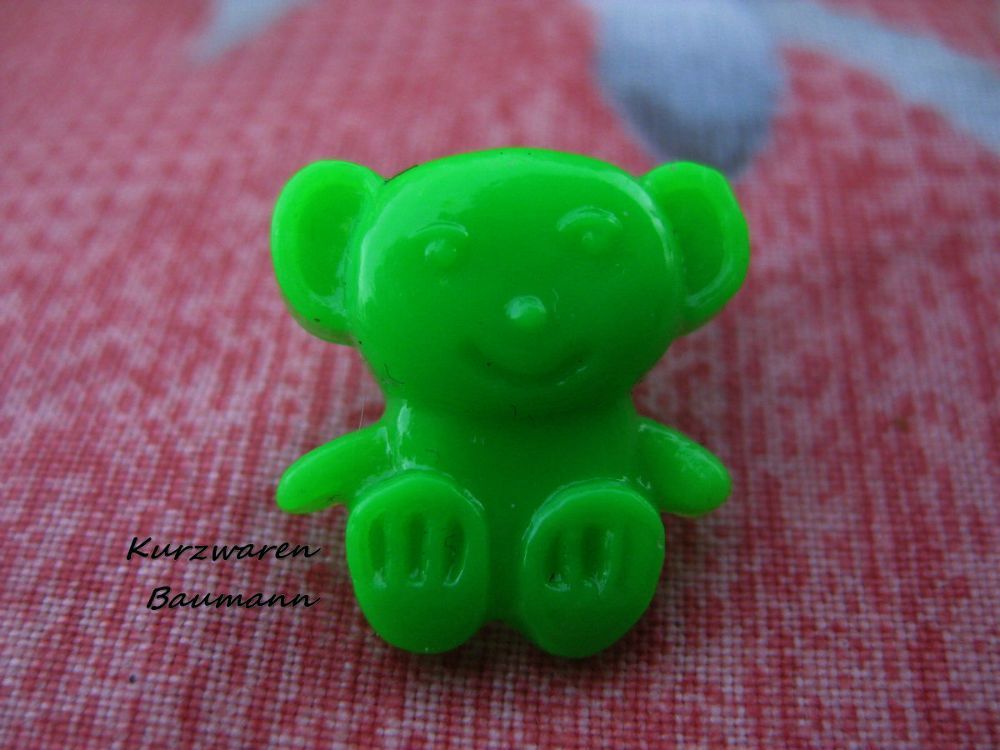 1Kunststoffkinderknopf Bär grün 16x7mm Öse3mm Nr1189