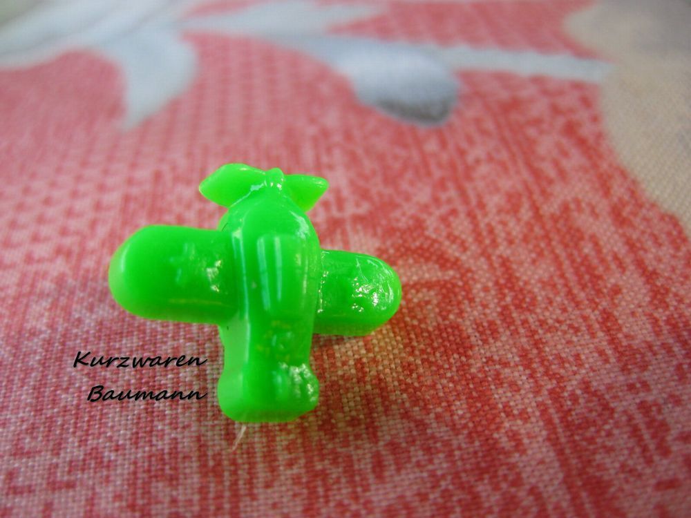1Kunststoffkinderknopf Flugzeug grün 15x17x7mm Öse4mm Nr1156