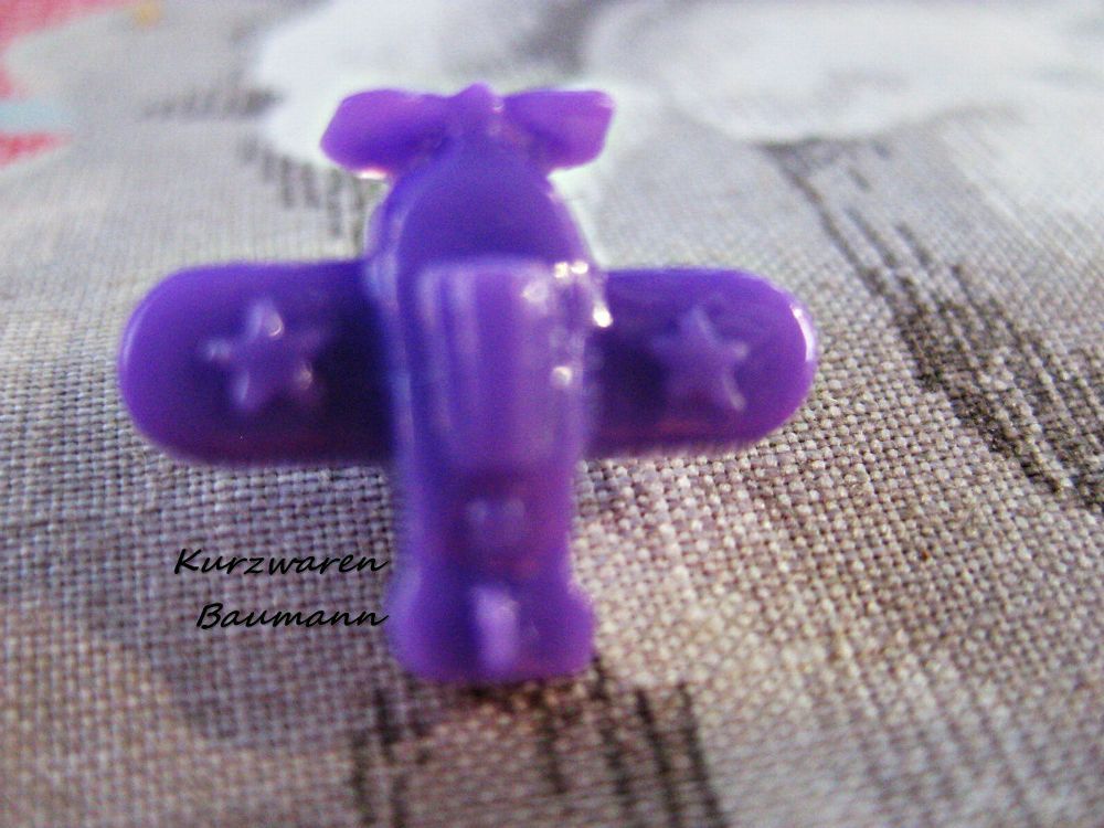 1Kunststoffkinderknopf Flugzeug lila 15x17x7mm Öse4mm Nr1158