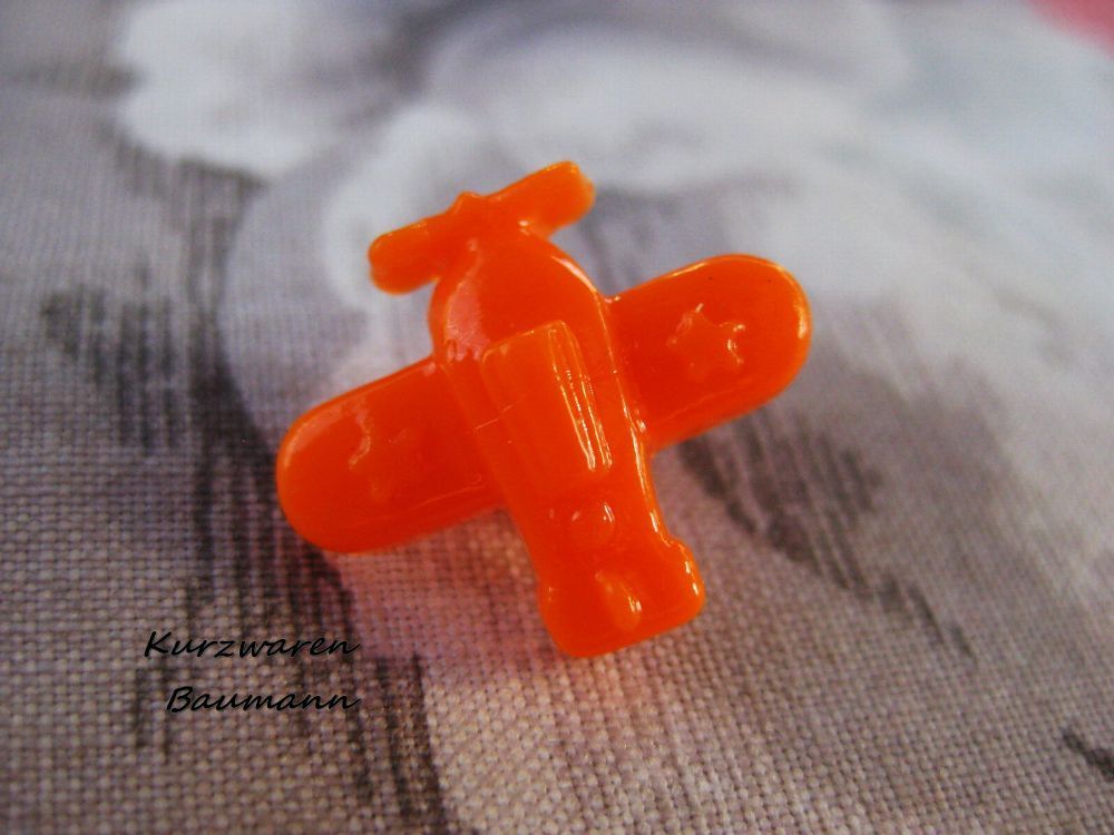 1Kunststoffkinderknopf Flugzeug orange 15x17x7mm Öse4mm Nr1157