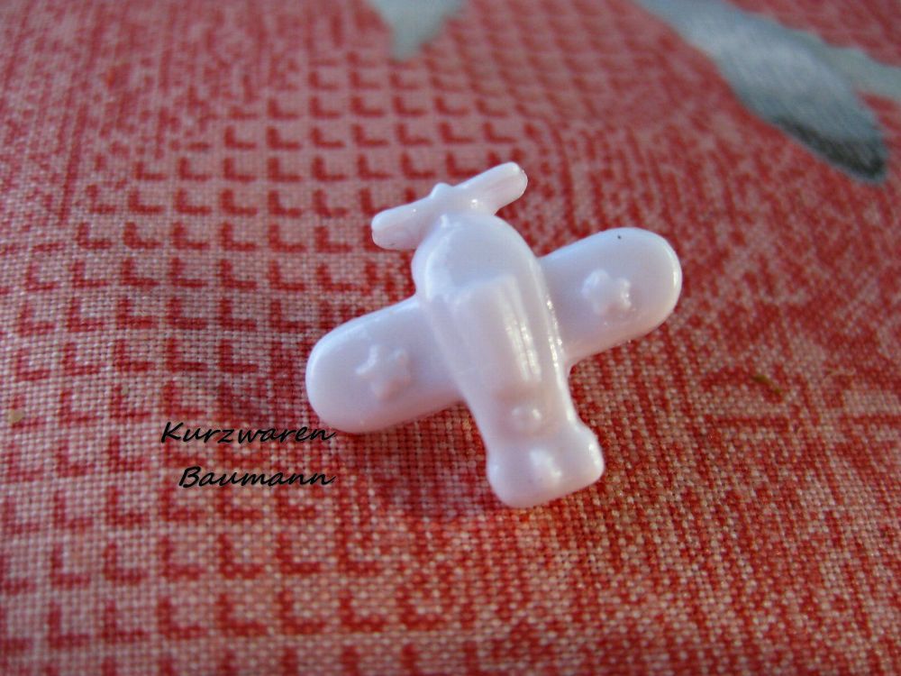 1Kunststoffkinderknopf Flugzeug weiß 15x17x7mm Öse4mm Nr1153