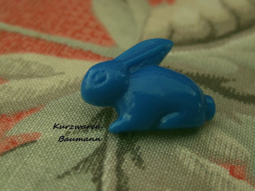 1Kunststoffkinderknopf Hase blau 19x15x7mm Öse 4mm Nr1187