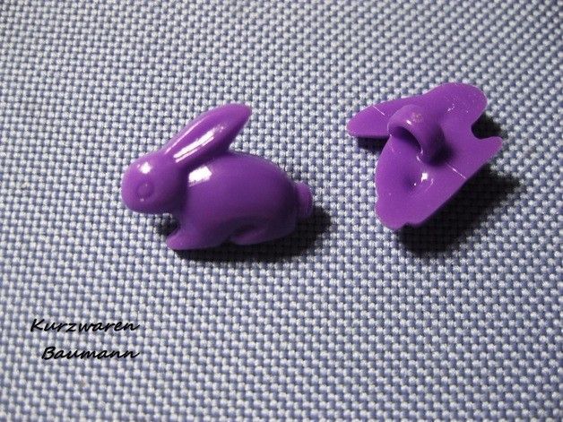 1Kunststoffkinderknopf Hase lila 19x15x7mm Öse 4mm Nr773