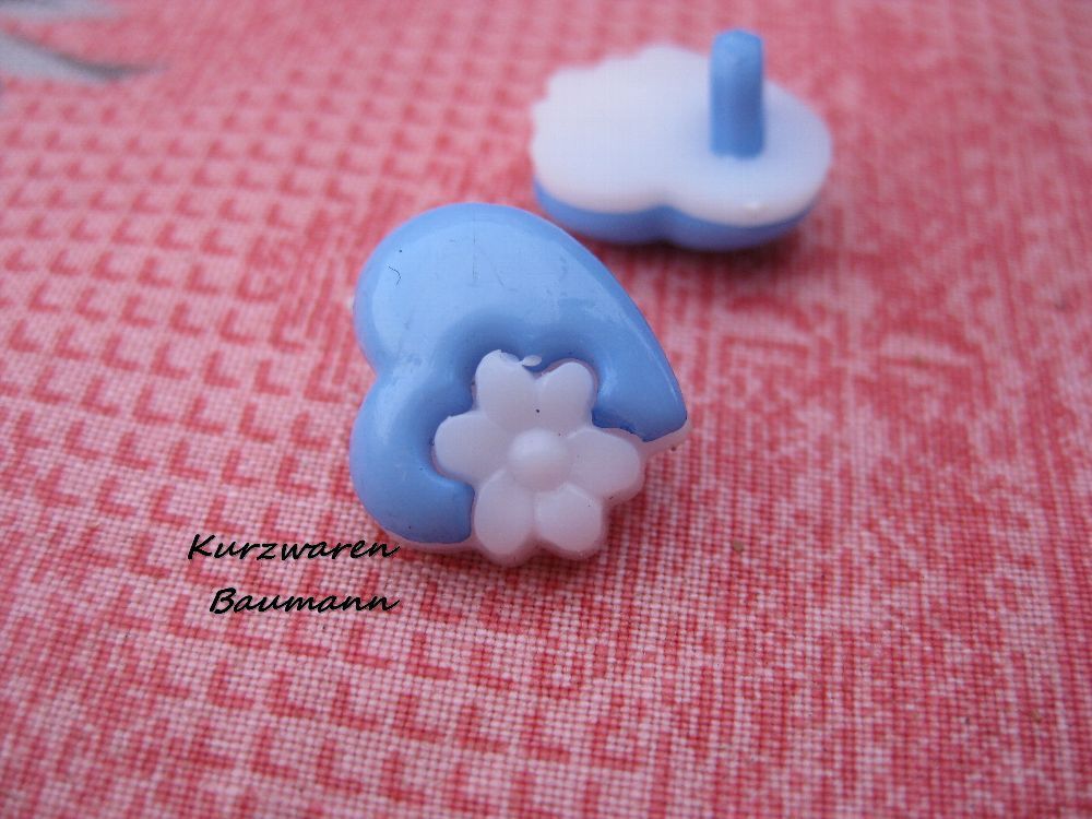 1Kunststoffkinderknopf Herz blau 14x10mm Öse 3mm Nr 1201