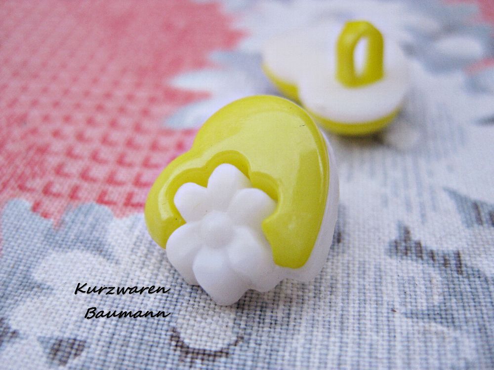1Kunststoffkinderknopf Herz gelb 14x10mm Öse 3mm Nr 1200