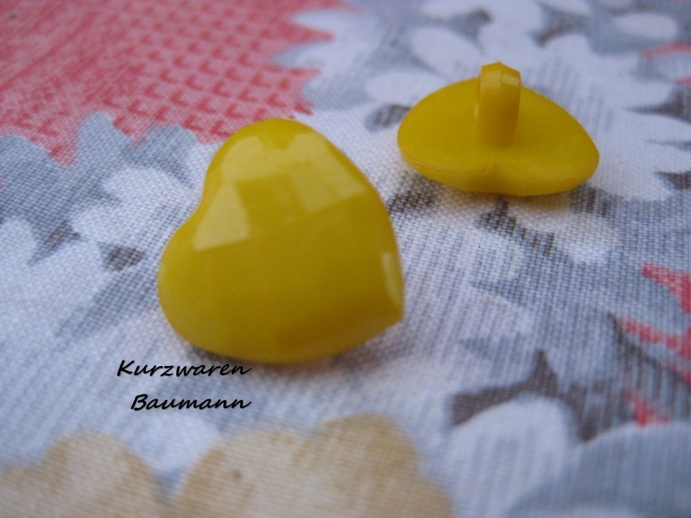 1Kunststoffkinderknopf Herz gelb 14x8mm Öse3mm Nr1193
