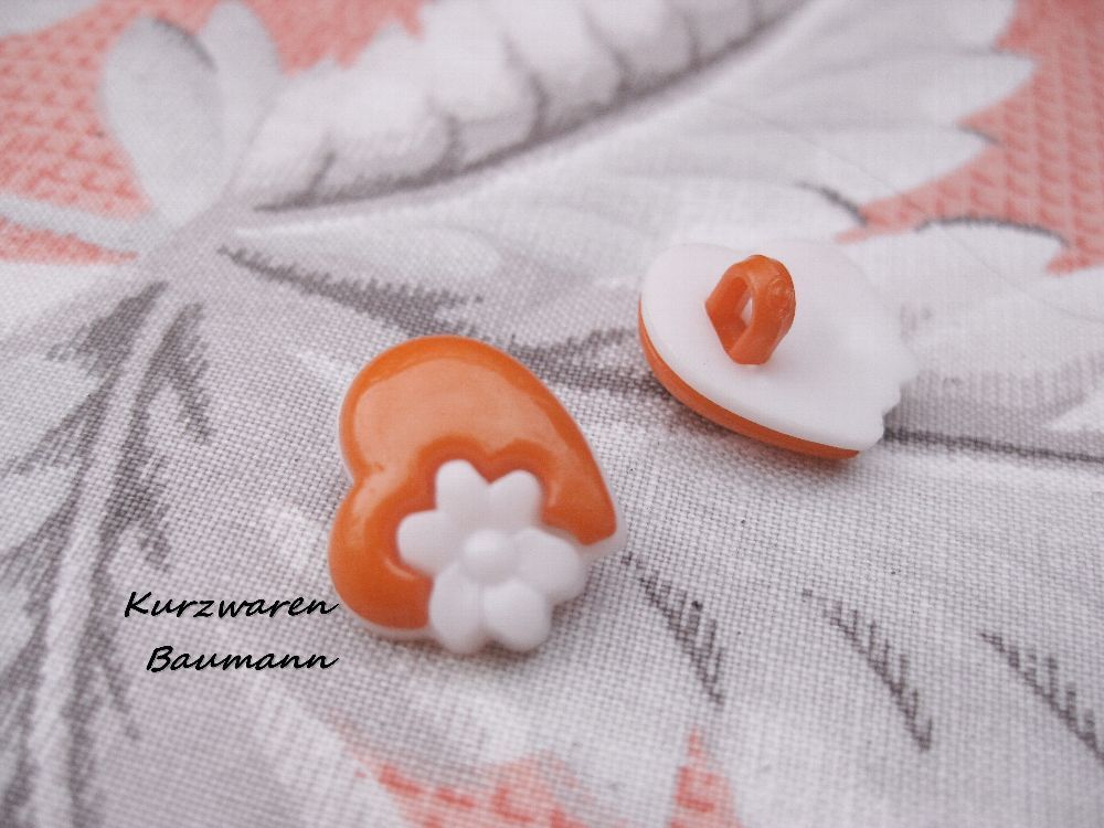 1Kunststoffkinderknopf Herz orange 14x10mm Öse 3mm Nr 1202