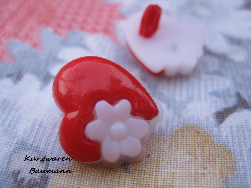 1Kunststoffkinderknopf Herz rot 14x10mm Öse 3mm Nr 1205