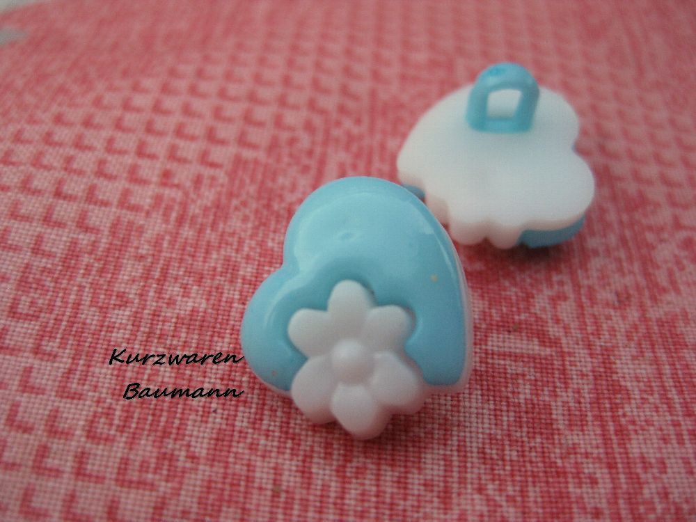 1Kunststoffkinderknopf Herz türkis 14x10mm Öse 3mm Nr 1203