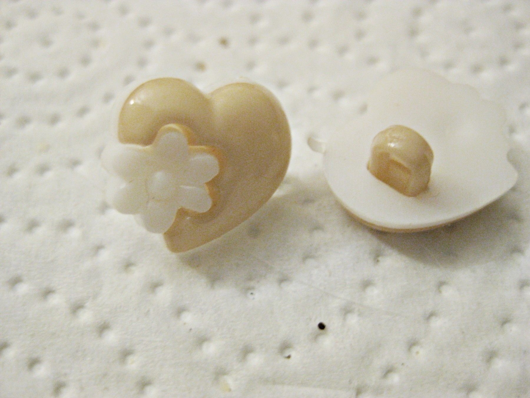 1Kunststoffkinderknopf Herz weiß/ beige 15x6mm Öse4mm Nr 1210