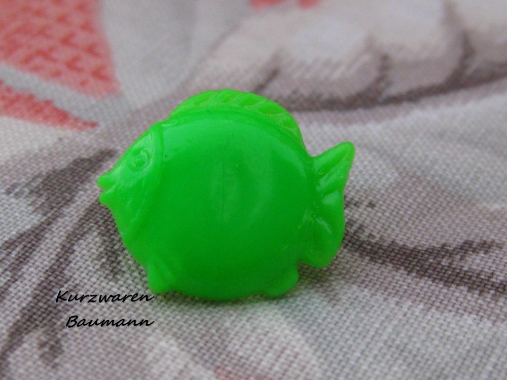 1Kunststoffkinderknopf Kunststoffkinderknöpfe Fisch grün 15x7mm Öse 3mm Nr 1180