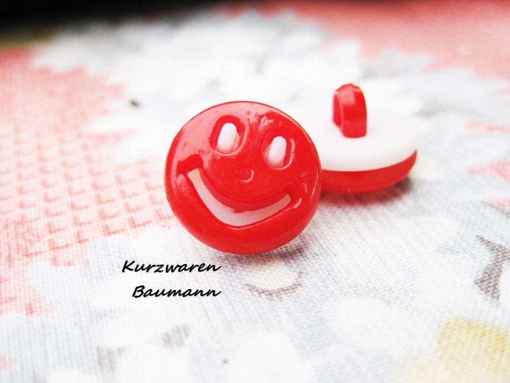 1Kunststoffkinderknopf Kunststoffkinderknöpfe Gesicht rot 13x6mm Öse 3mm Nr 1253