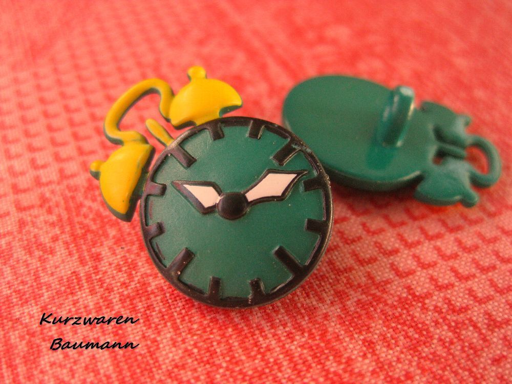 1Kunststoffkinderknopf Kunststoffkinderknöpfe Uhr grün 25x16x8mm Öse 3mm Nr 1065