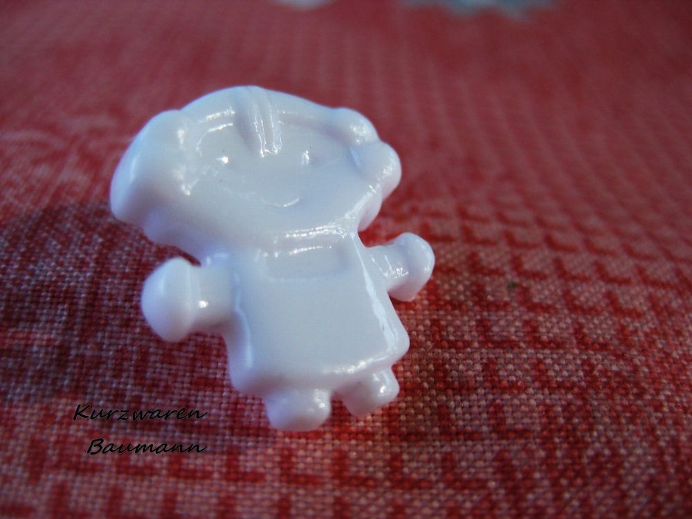 1Kunststoffkinderknopf Puppe weiß 15x17x7mm Öse4mm Nr1142