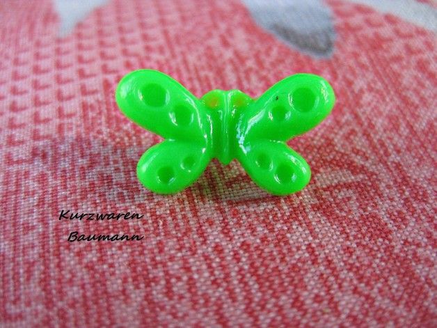 1Kunststoffkinderknopf Schmetterling grün 10x18x7mm Öse 3mm Nr 1150