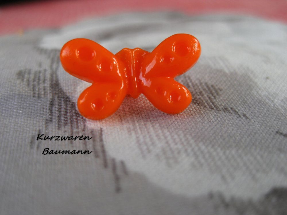 1Kunststoffkinderknopf Schmetterling orange 10x18x7mm Öse 3mm Nr 1152