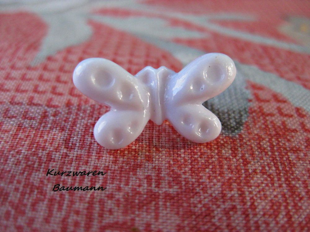1Kunststoffkinderknopf Schmetterling weiß 10x18x7mm Öse 3mm Nr 1149