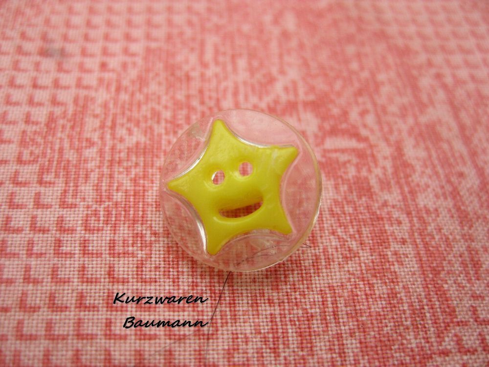 1Kunststoffkinderknopf Stern mit Gesicht gelb 14x7mm Öse 3mm Nr 1258