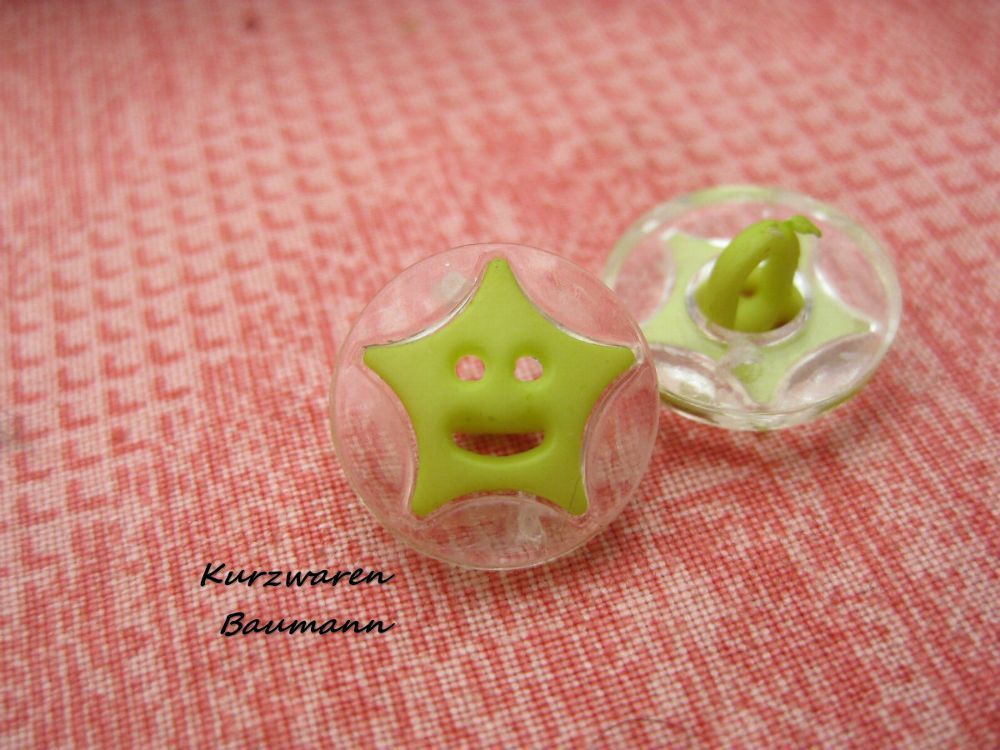 1Kunststoffkinderknopf Stern mit Gesicht hellgrün 14x7mm Öse 3mm Nr 1259