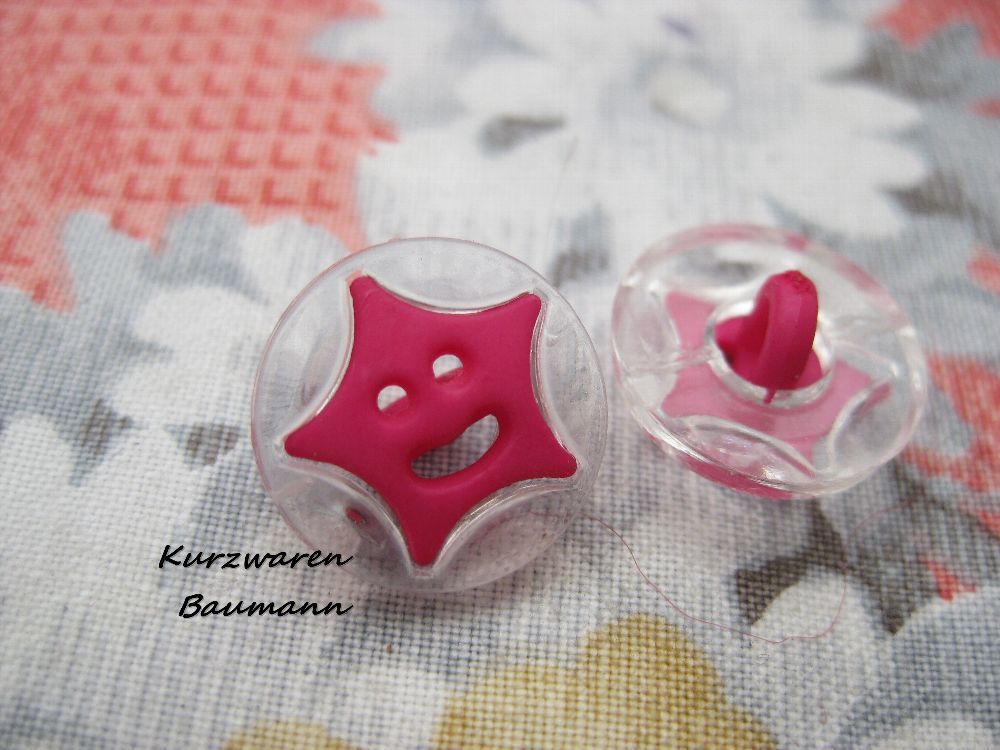 1Kunststoffkinderknopf Stern mit Gesicht pink 14x7mm Öse 3mm Nr 1260