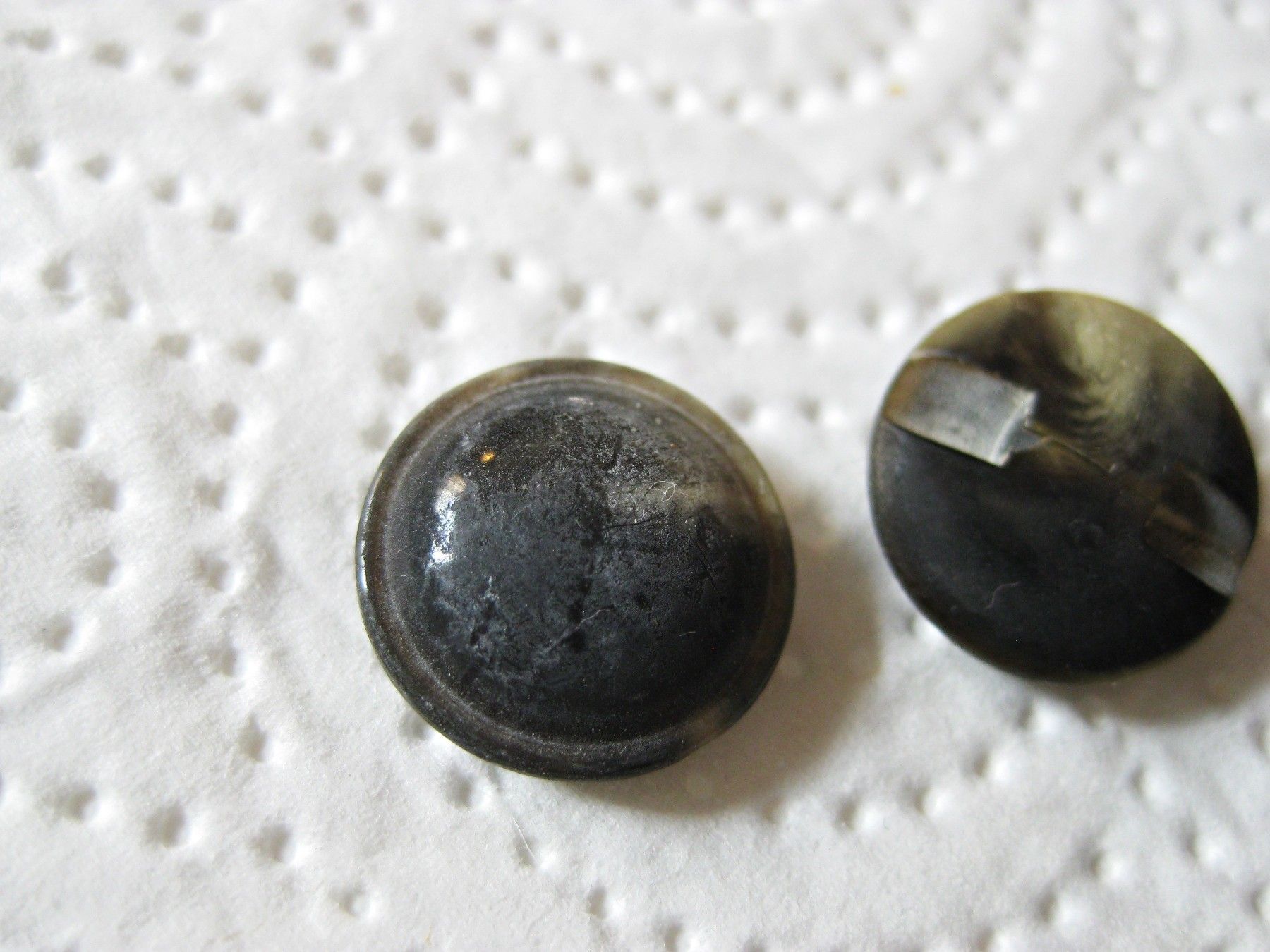 1Kunststoffknopf Knöpfe dunkelbraun beige marmoriert 15x6mm Öse Nr. 4017