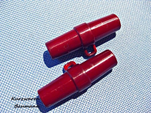 1Kunststoffknopf Knöpfe dunkelrot Knebel 35x12mm Öse 4mm Nr 534
