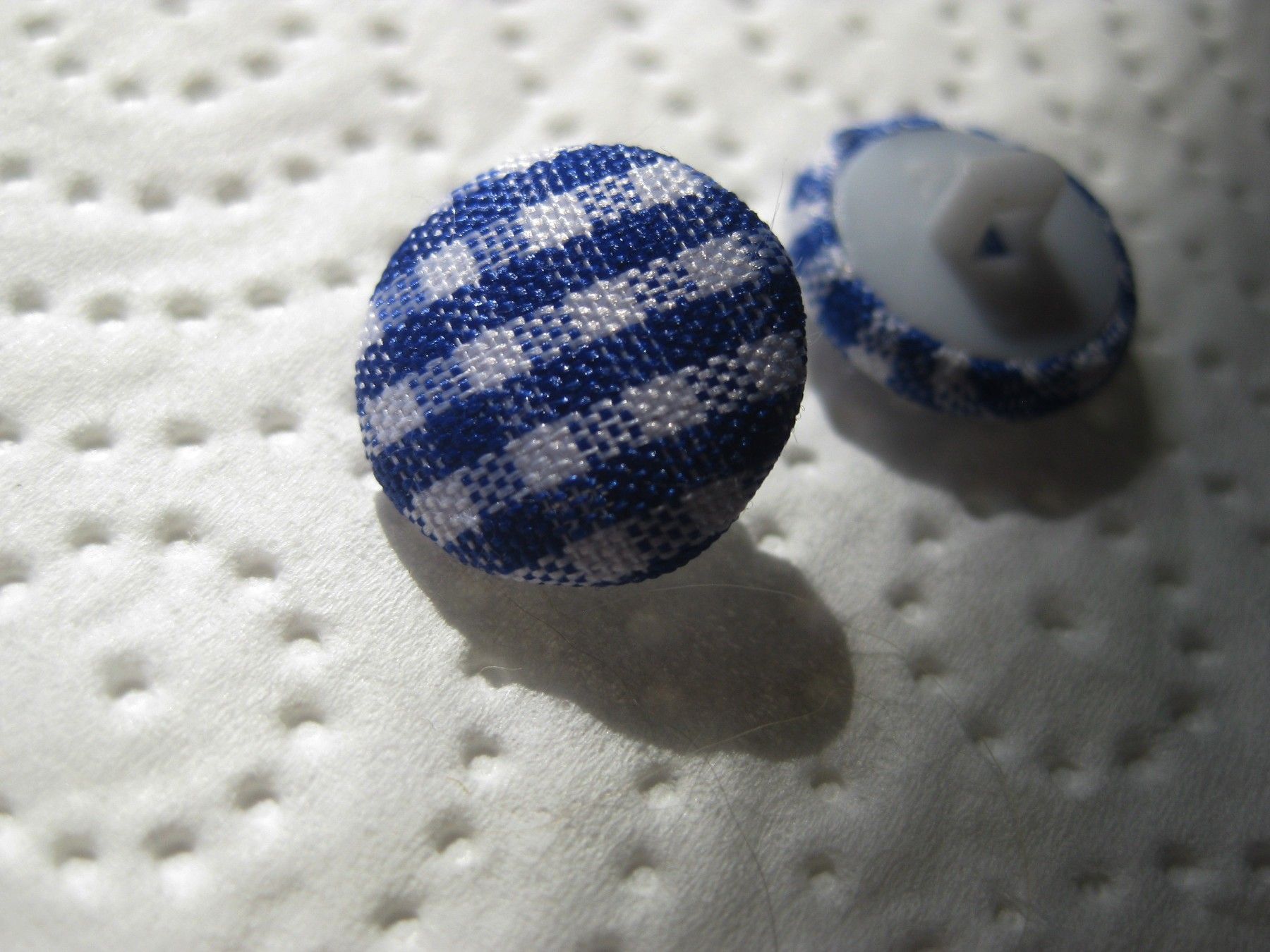 1Kunststoffknopf Kunststoffknöpfe blau/ weiß kariert 14x7mm Öse 3mm Nr 4001