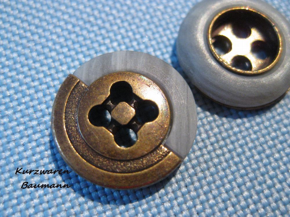 1Kunststoffknopf Kunststoffknöpfe mit Metallmitte blau 15x4mm 4Loch a 3 mm Nr 1001