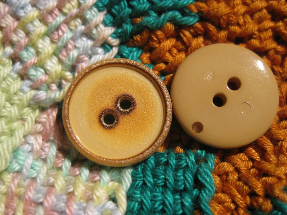 1Kunststoffknopf maisgelb 20x3mm 2Loch a 2mm Nr 1546