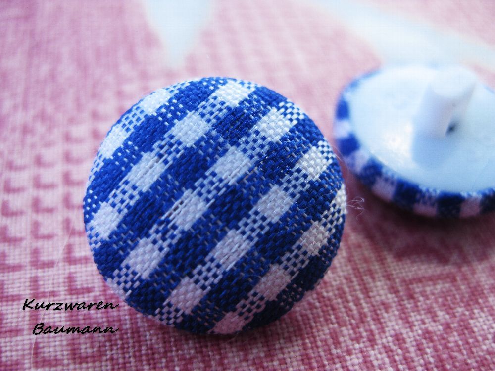 1Kunststoffknopf Stoff bezogen blau/ weiß kariert 17x9mm Öse 3mm Nr 1095