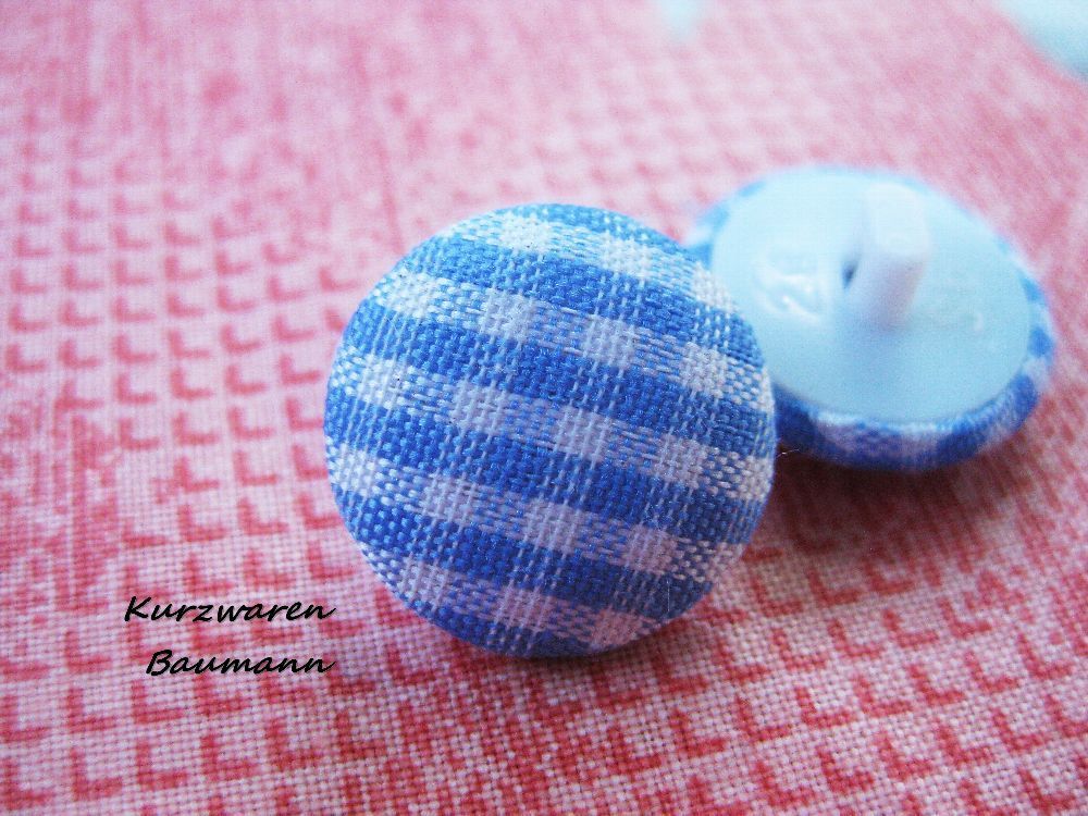 1Kunststoffknopf Stoff bezogen hellblau/ weiß kariert 14x7mm Öse 3mm Nr 1093