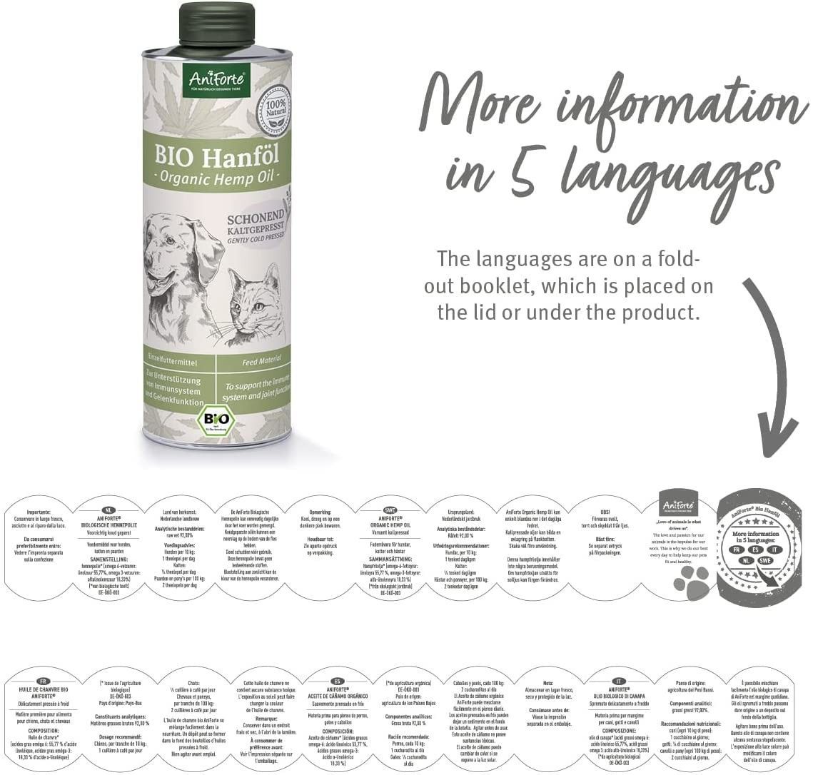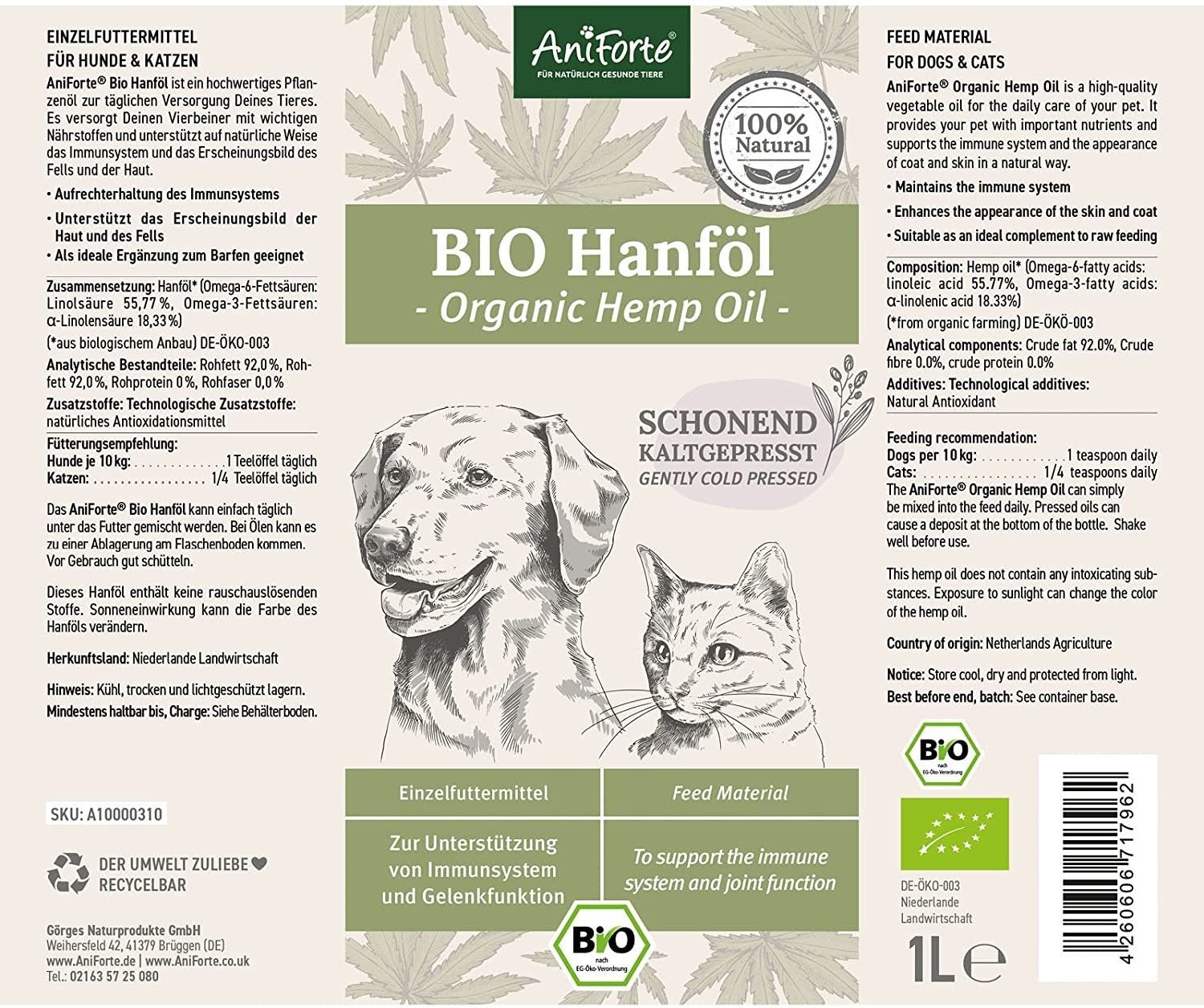 AniForte 1L AniForte Bio Hanföl schonend kaltgepresst für Hunde, Katzen, Barf