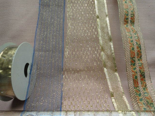 1m edle goldige Stoff-Bordüren Dekorationsband Schleifen --- AusWahl ---