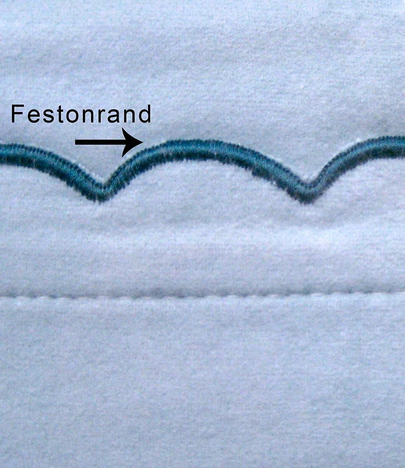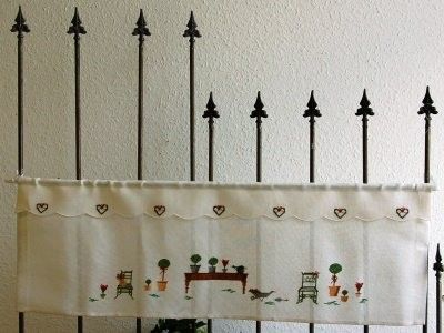 Breite Höhe: 46cm Farbe: weiß 12 Fäden pro cm, eignet sich hervorragend für Bistrogardinen. Der Feston-Rand befindet sich nur an einer Längsseite! Das Bild stellt nur eine Gestaltungsmöglichkeit dar. Das Band ist unbedruckt und unbestickt.