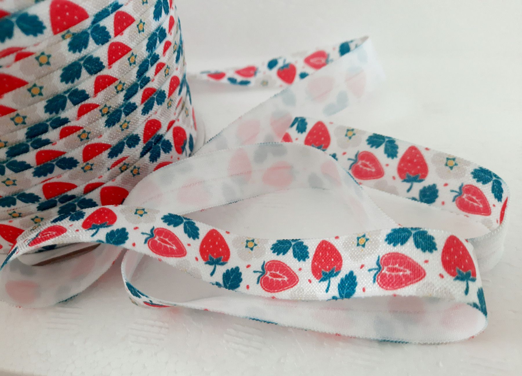1m x 15mm Falzgummi Einfassband elastisch Satinglanz Erdbeeren Print