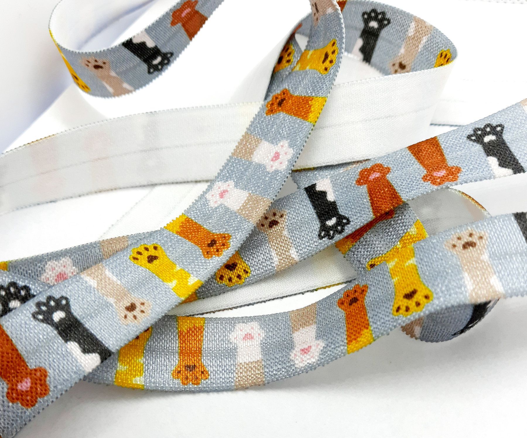 1m x 15mm Falzgummi Einfassband elastisch SatinglanzHellgrau Katzenpfoten Print