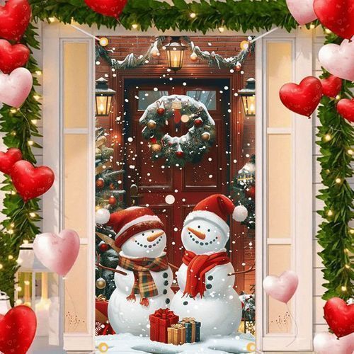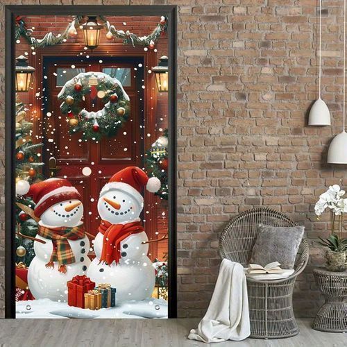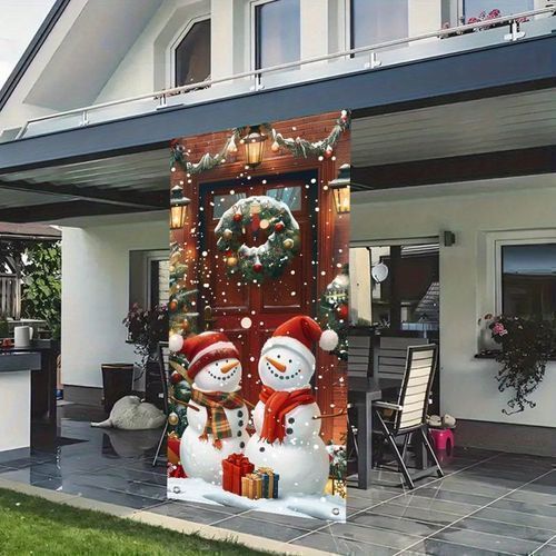 1pc Festive Snowman Christmas Door Banner, 35x70inch Durable Polyester Fiber Garden F