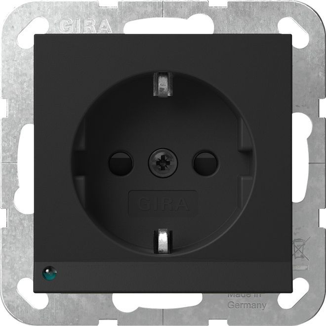 Gira 1St. Gira 4170005 Steckdose 16A 250V mit LED-Orientierungsleuchte und Shutter, Schwar