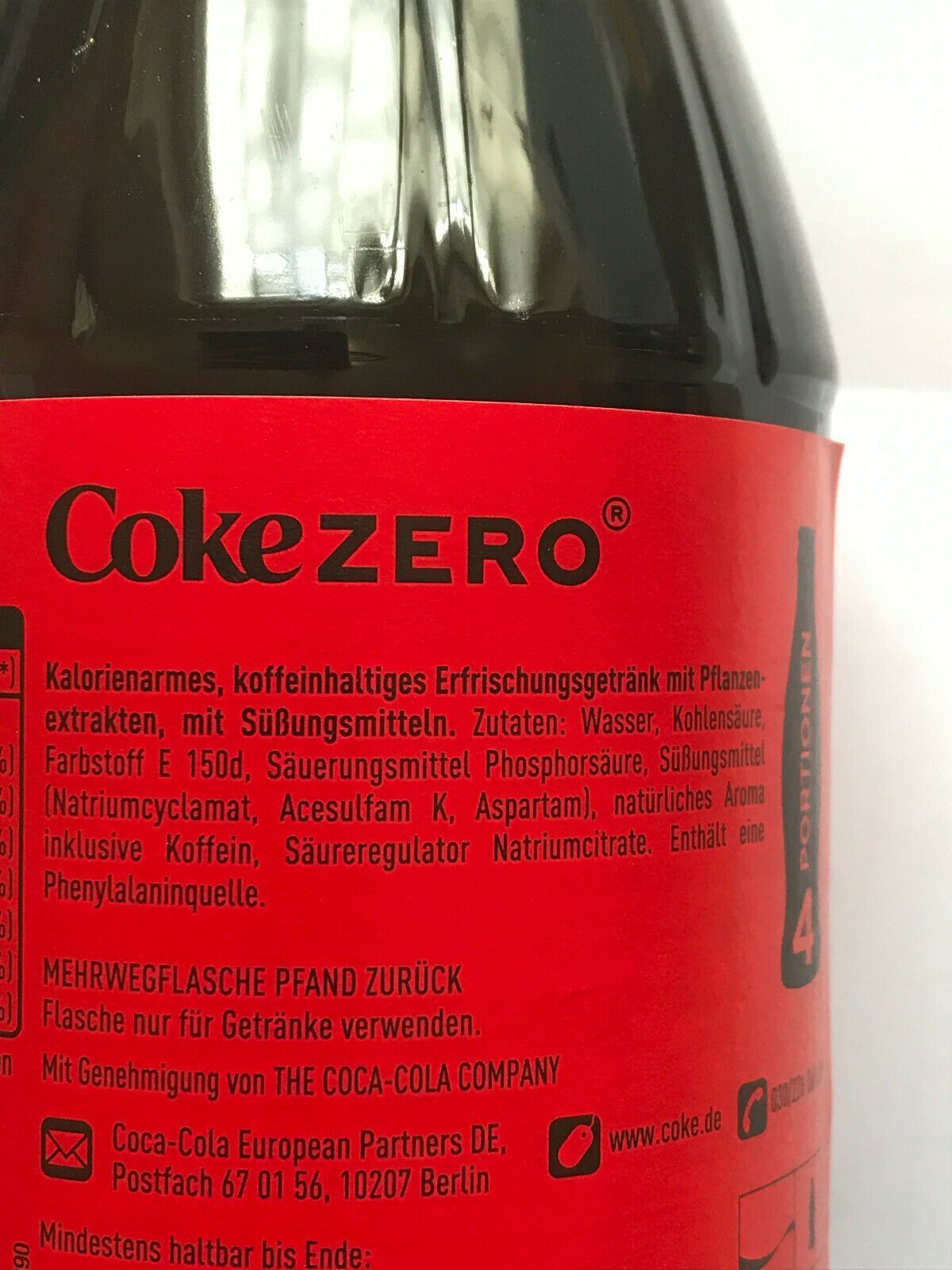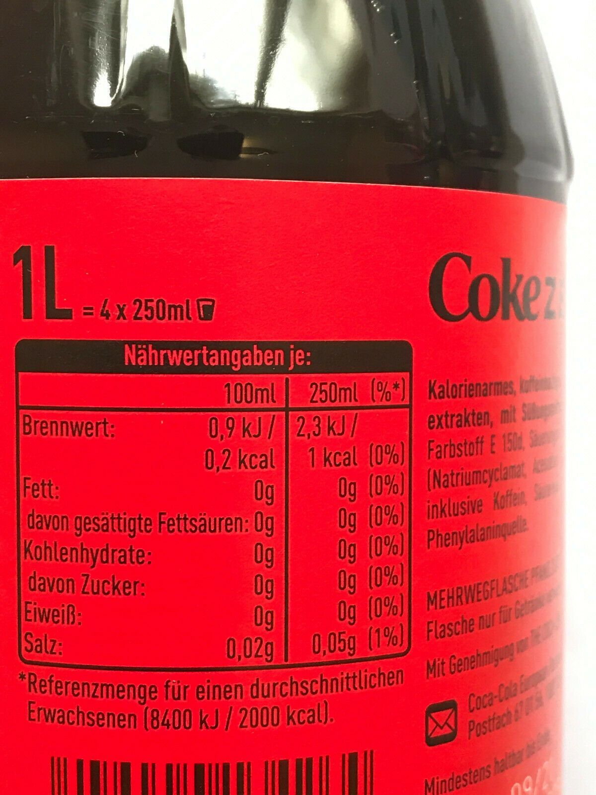 1x 1,00 L. Coca-Cola zero PET Flasche - Mehrweg - ohne Kasten
