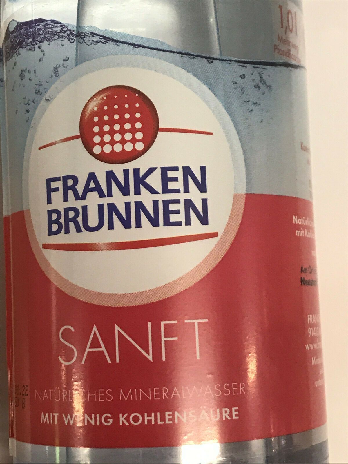 1x 1,00L Franken Brunnen Mineralwasser Sanft PET Flasche Mehrweg ohne Kasten