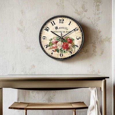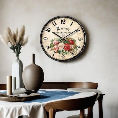 1x 30cm Wanduhr Shabby Chic Blumen Vintage Stille