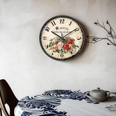 blumen uhr shabby chic vintage stille küchen wohnzimmer garten wand wanduhren blumenmotiv sweep quarz arabisch ziffer