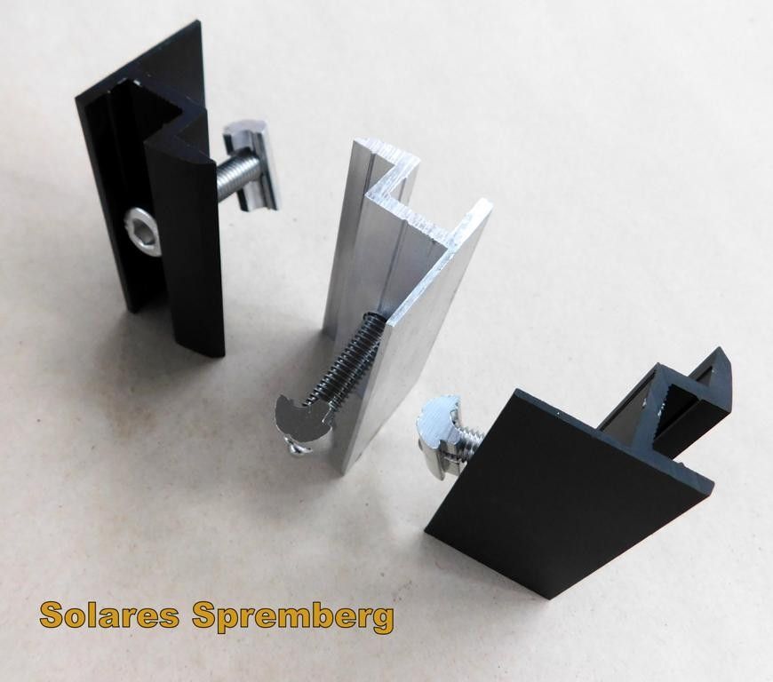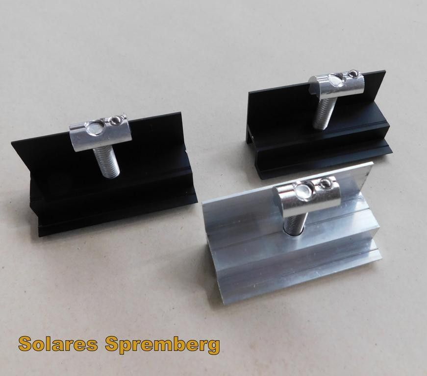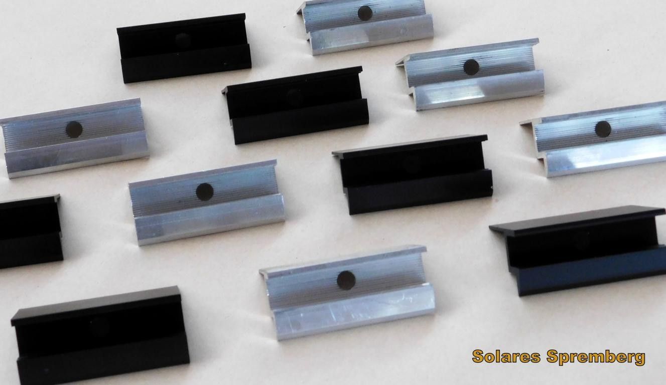 Passend für alle Nut 8 Anbindungen unserer Montageprofile - 1X ENDKLEMME mit 70mm Länge, vorkonfektioniert für gerahmte Module mit 28-50mm Höhe in blank oder schwarz eloxiert Die Klemme besteht aus: 1x Endklemme (Aluminium) 1x Zylinderkopfschraube M8 (Edelstahl) 1x Nutenstein (Aluminium) Passt in al