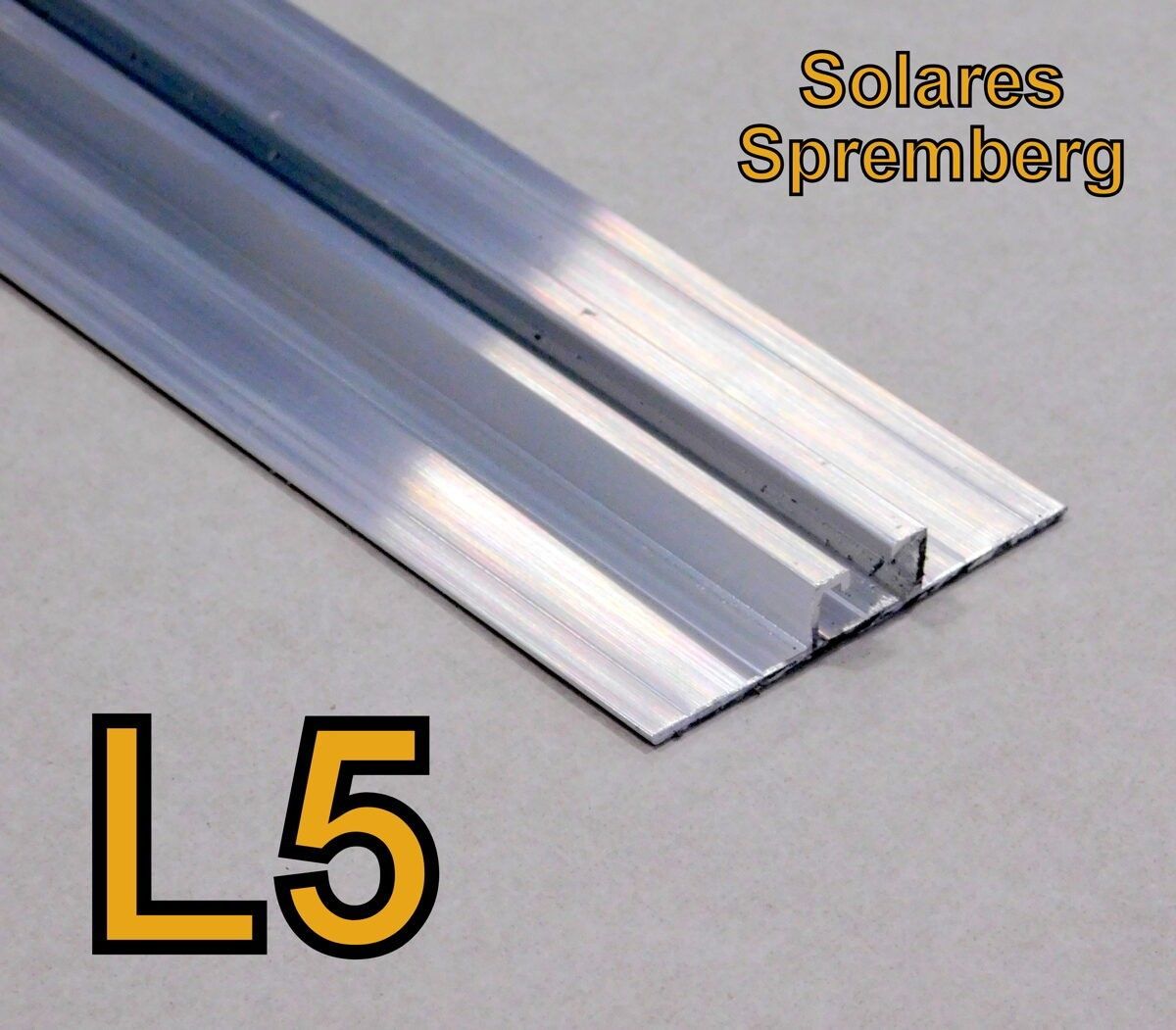 1X MONTAGEPROFIL L5 Werkstoff: Aluminium EN AW 6063-T66 Maße: h=13mm B=90mm Oberfläche: blank Unterseite: wahlweiße vollflächig EPDM-beschichtet Gewicht: 0,70 kg m Anbindung oben: Nut 8 Obere Anbindung mit Nutenstein (M8) und Zylinderkopfschraube (Innensechskant) oder Klick Fix Schnellbausystem Besc