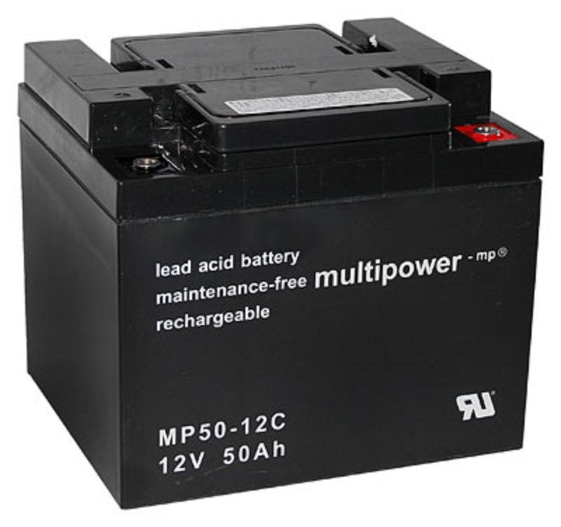 1x Multipower Blei-Akku MP50-12C Pb 12V 50Ah Zyklenfest M6 Innengewinde