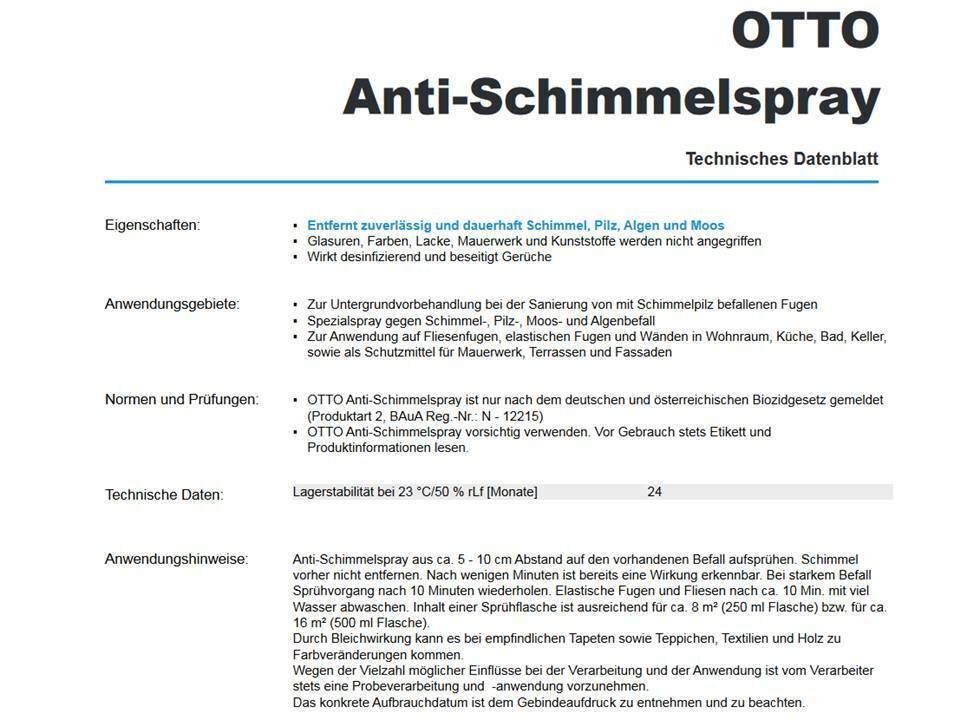 OTTO 1x Otto-Chemie Anti Schimmel Spray 500ml Schimmel Entferner