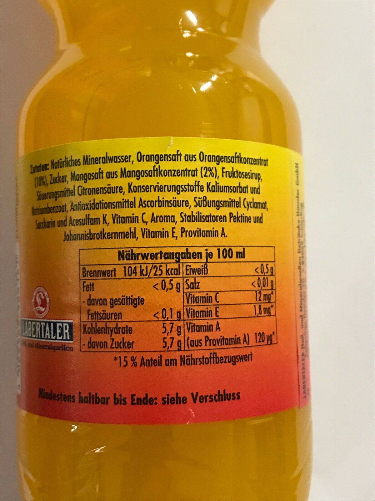1x0,5l. Labertaler PET Flasche orange. mango. vit - Einweg -